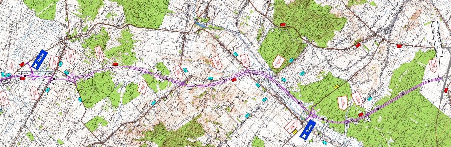 • Zielony most dla zwierząt dużych w Lesie Węgrzynowskim oraz 14 przejść dla mniejszych zwierząt.