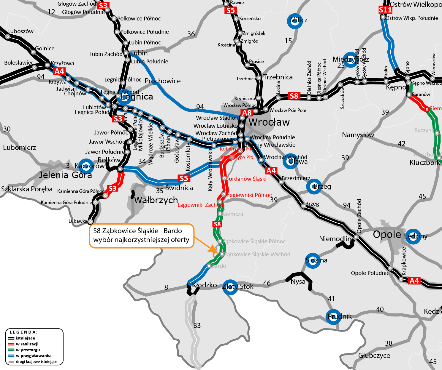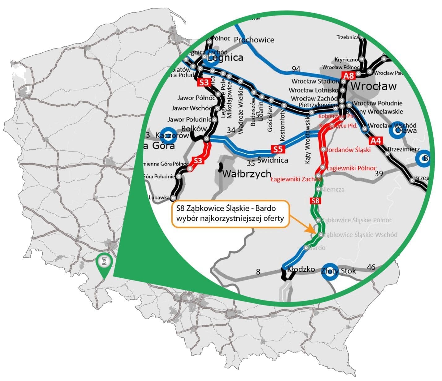 Nowa droga ekspresowa S8 będzie miała kluczowe znaczenie dla tego regionu, przecinając tereny gmin Ząbkowice Śląskie i Bardo. Zaplanowano minimalne wykorzystanie obecnej drogi krajowej nr 8, z naciskiem na nowy ślad, który będzie sprzyjał zarówno kierowcom, jak i lokalnej faunie. W ramach projektu powstaną dwa węzły drogowe, pięć mostów (z czego cztery będą służyły również jako przejścia dla zwierząt), siedem wiaduktów nad drogą oraz dodatkowe wiadukty i przepusty zaprojektowane z myślą o ochronie środowiska.