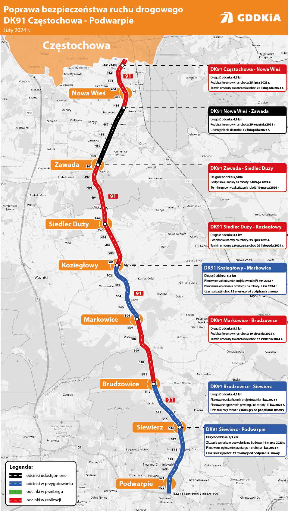 Generalna Dyrekcja Dróg Krajowych i Autostrad (GDDKiA) z oddziałem w Katowicach ogłosiła parę dni temu rozpoczęcie kolejnego ambitnego projektu, który ma na celu przebudowę kluczowego odcinka pomiędzy Zawadą a Siedlcem Dużym, gdzie znajduje się droga krajowa DK91.