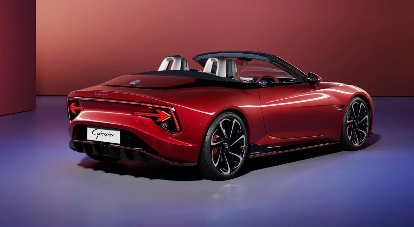 Zgodnie z tradycją sportowych modeli MG, Cyberster posiada miękki, składany dach, który można złożyć w ciągu zaledwie 15 sekund nawet podczas jazdy z prędkością do 50 km/h. Sylwetka sportowego elektryka inspirowana jest klasycznymi roadsterami i przyciąga uwagę swoim muskularnym, aerodynamicznym kształtem. Sportowe MG Cyberster oferuje także doskonały rozkład masy (50:50) i nisko położony środek ciężkości, co przekłada się na wyjątkową dynamikę i kontrolę w zakrętach.