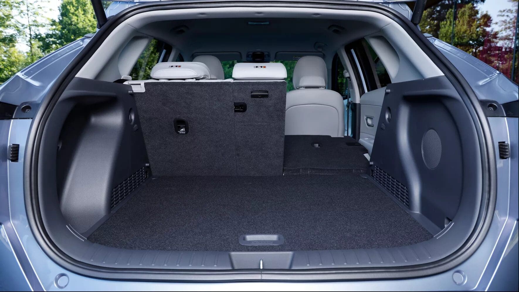 Sportowy charakter tego niedużego SUV-a podkreślają solidne nadkola ze zintegrowanymi przednimi i tylnymi lampami oraz dynamiczne panele boczne z motywem klina. Całkowicie nowa Kona Electric zapewnia przestronniejsze, bardziej wszechstronne wnętrze, zwiększające komfort pasażerów i ułatwiające przewożenie ładunków. W pełni składane siedzenia w drugim rzędzie i większy bagażnik mają sprostać dużym wymaganiom klientów.