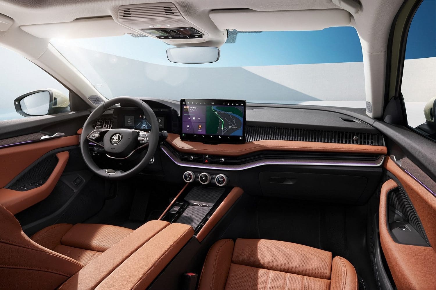 Zmiany dotyczą przede wszystkim cyfrowego kokpitu, wyświetlacza head-up oraz centralnego ekranu systemu Infotainment. Jak wyjaśnia Peter Olah, Kierownik Projektowania Wnętrz w Skoda Auto, nowe wnętrza są synonimem intuicyjności, prostoty i inteligentnych rozwiązań. Dźwignia zmiany biegów DSG została przeniesiona na kolumnę kierownicy, co czyni ją łatwo dostępną i zwiększa przestrzeń w kabinie.
