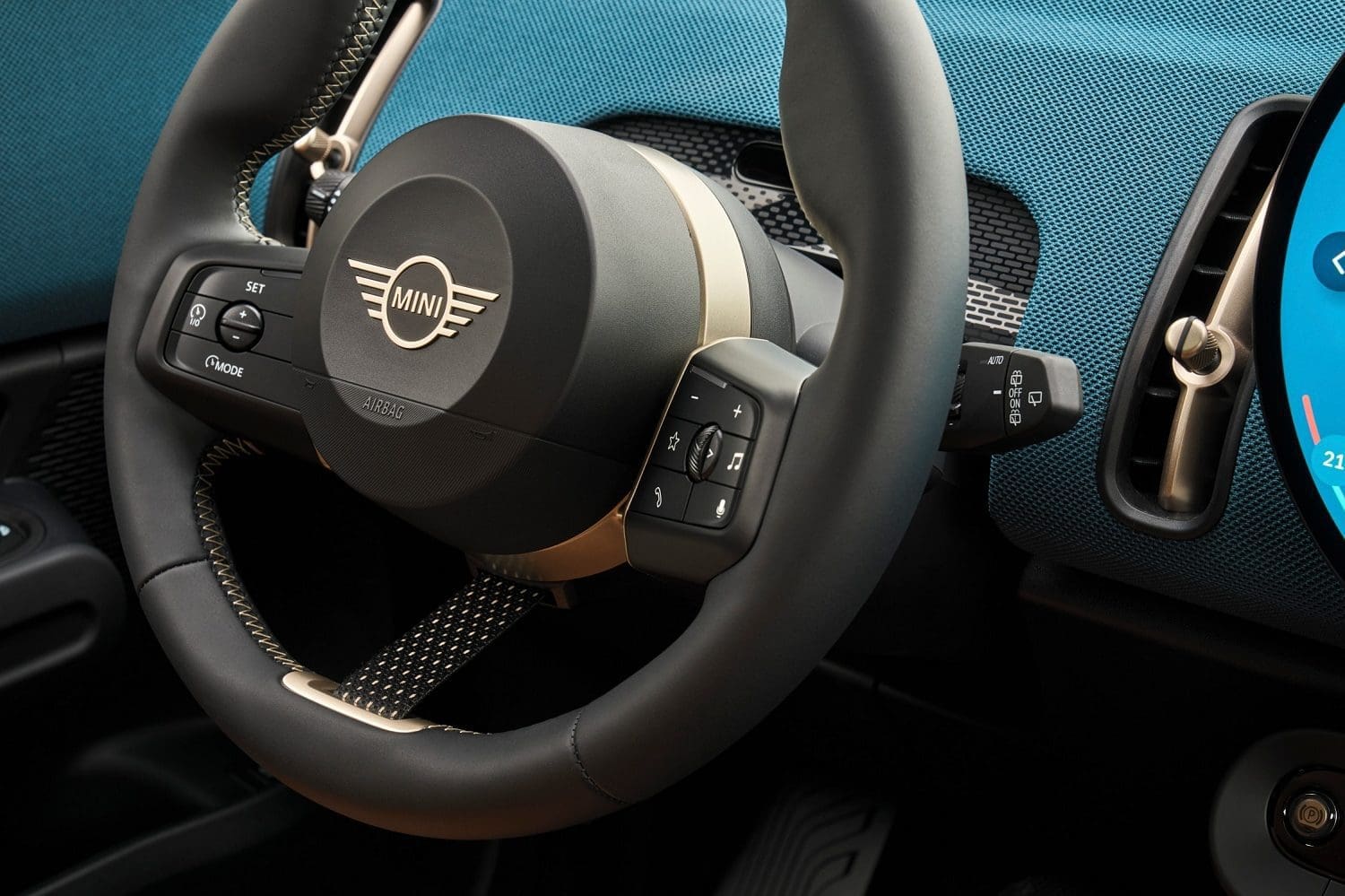 Wnętrze nowego Mini Countryman jest zaprojektowane z myślą o przestronności, komforcie i nowoczesności. Deska rozdzielcza nie posiada dodatkowego wyświetlacza za kierownicą, a wszystkie kluczowe informacje są prezentowane na opcjonalnym wyświetlaczu Head-Up. To podejście producenta minimalizuje elementy rozpraszające kierowcę ale również daje większą przestrzeń z widokiem do przodu, tworząc bardziej przestronne wnętrze.