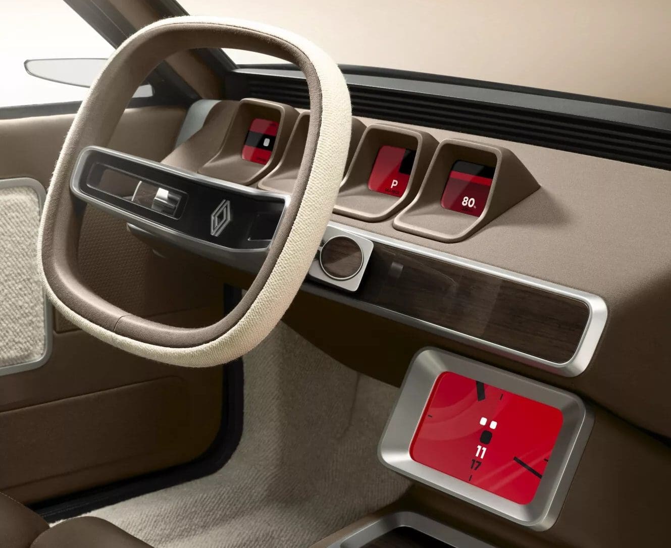 Sama deska rozdzielcza i konsola centralna zostały zmodernizowane, tak aby dostosować je do dzisiejszych standardów, tego co widzimy w samochodach. Nowoczesny ekran centralny łączy klasyczny wygląd z nowoczesną funkcjonalnością i oferując dostęp do najnowszych technologii Renault.