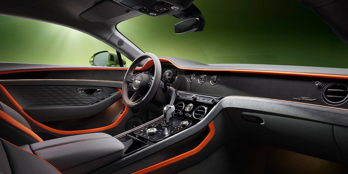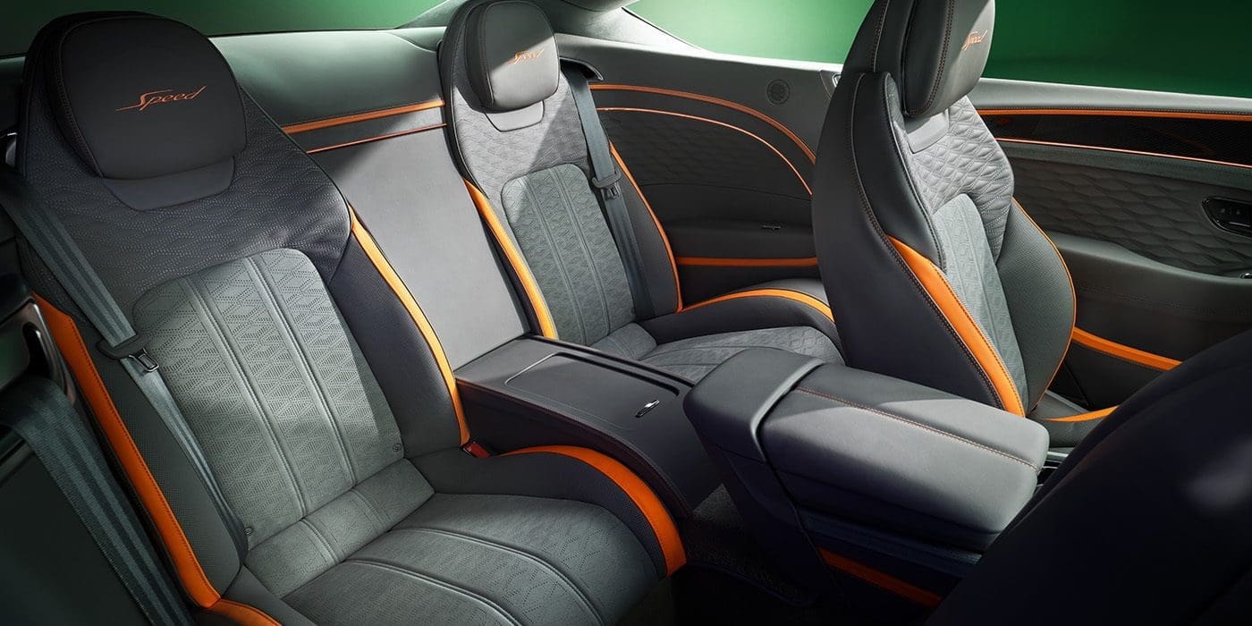 Wnętrze nowego Continental GT Speed to prawdziwy majstersztyk luksusu. Każdy klient tego samochodu znajdzie tu nie tylko emblemat „Speed” na desce rozdzielczej i fotelach, ale także nową, pikowaną skórę w kształcie diamentów 3D. Paleta kolorystyczna tapicerki i wykładzin to szeroki wybór, a w specjalnej wersji Blackline wszystkie zewnętrzne i wewnętrzne elementy wykończono w ciemnych, eleganckich odcieniach.