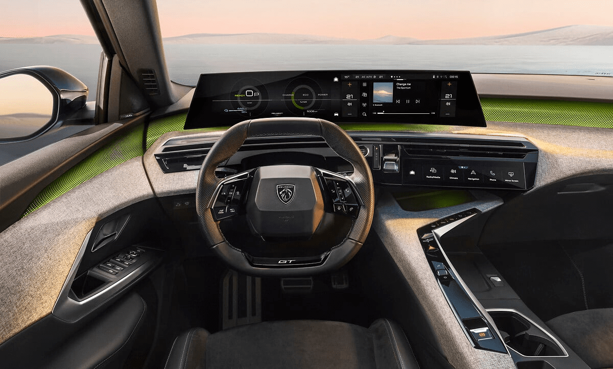 Wnętrze nowego e-5008 to połączenie technologicznych nowinek z komfortem użytkowania. Centralnym punktem jest oczywiście panoramiczny i-Cockpit z 21-calowym unoszącym się wyświetlaczem, który sprawia, że kabina pasażerska jest równie zaawansowana technologicznie, co przyjazna dla użytkownika. Dodatkowo model ten oferuje szereg systemów wspomagających jazdę i systemów bezpieczeństwa. Znajdziemy w nim między innymi adaptacyjny tempomat, system nawigacji TomTom z dostępem do Internetu oraz asystenta głosowego „OK PEUGEOT”.